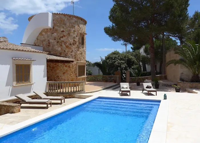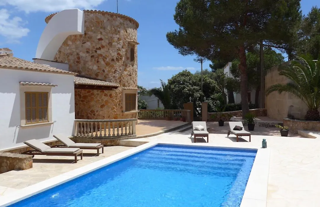 Situated around a 25-minute walk from the small Cala Del Moro Sandy Beach, the 3-bedroom Villa Torre Al Mar Santanyi invites guests to relax at a terrace.